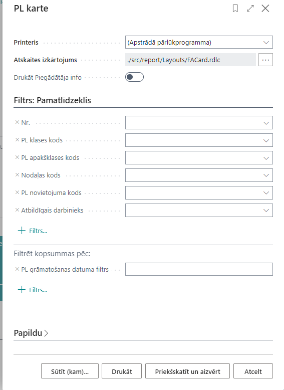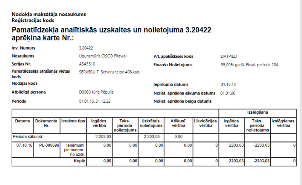 Lai izdrukātu atskaiti Pamatlīdzekļa karte: