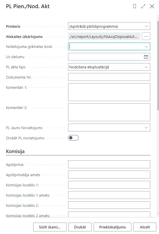 Drukāt PL novietojumu – ja ir nepieciešams aktā izdrukāt informāciju par pamatlīdzekļa novietojumu;