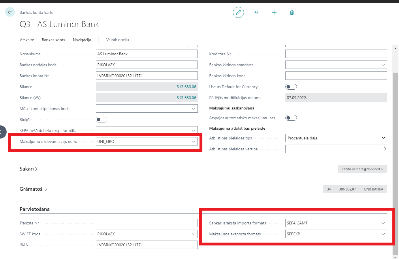 Visbeidzot Bankas konta kartiņā jāaizpilda lauks Bankas izraksta importa formāts.