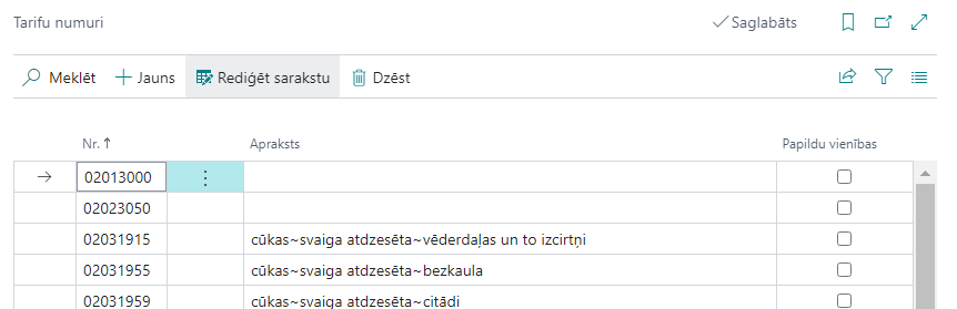 Papildu vienības – atzīmē, ja attiecīgajam kodam nepieciešams norādīt daudzumu papildmērvienībās;