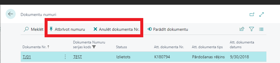 Ar šīs funkcijas palīdzību var veikt izvēlētā numura atbrīvošanu. Atbrīvojot numuru, pazūd saite ar saistīto dokumentu un šo numuru var izmantot citā dokumentā.