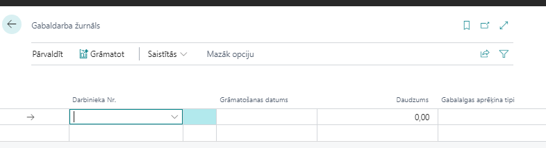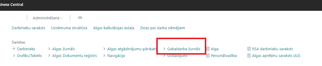 Lai atvērtu Gabaldarba reģistrācijas žurnālu, noklikšķiniet uz “Gabaldarba žurnāls”.