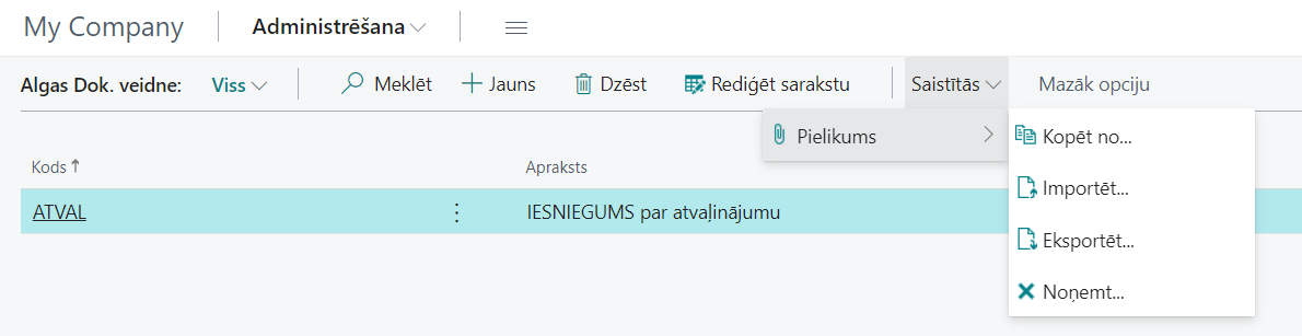 Lai atvērt šo tabulu, nospiediet “Uzstādījumi” → “ Algas Doc. veidne ”.
