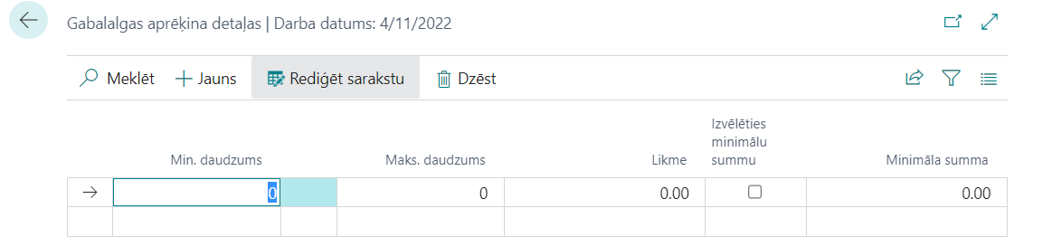 Izvēlēties minimālu summu | Ielieciet ✓ jā pie dota aprēķina tiek pielietota minimāla uzkrājuma summa | |