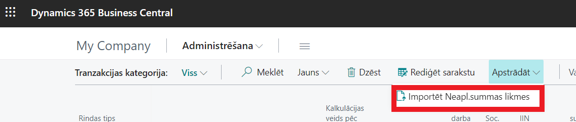 Pirms importa nepieciešams saglabāt datus, kuri ir atsūtīti no Nodokļu inspekcijas, drošā un pieejamā vietā XML failu formātā. Lai importēt tekošās neapliekama minimuma likmes darbiniekiem, nepieciešams ieiet transakcijas sarakstā (Transakcijas kategorija), novietot kursoru uz rindas ar neapliekama minimuma transakciju un izvēlēties funkciju «Importēt Neapl. Summas likmes».