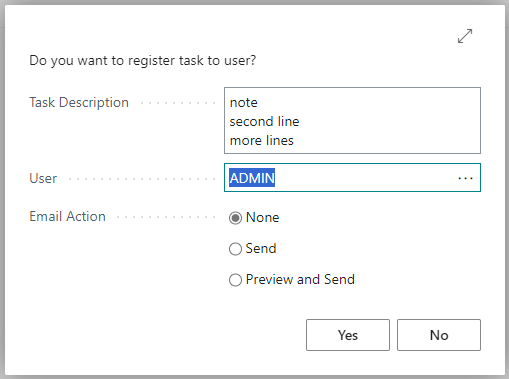 - After user press Save, current app asking user, if he/she wants to create new user task based on current note, and to whom assign this task