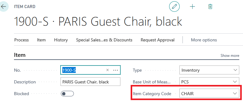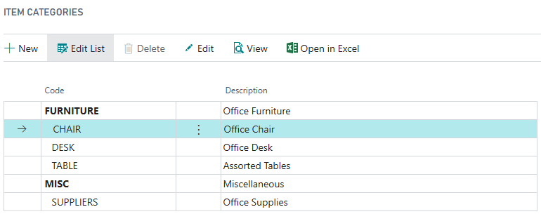 Choose the 🔎icon, enter Item Categories, and then choose the related link.