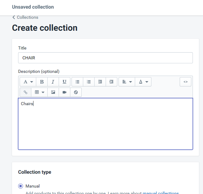 Open collections webpage, https://mycompany.myshopify.com/admin/collections