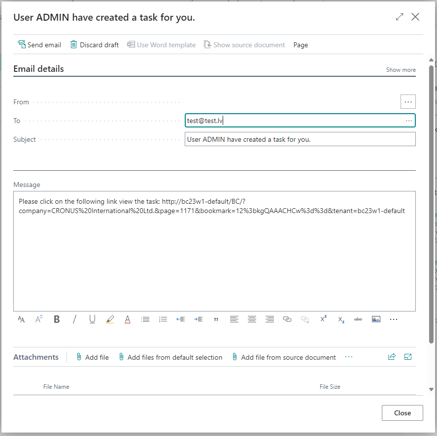 If user choose “Preview and Send” option, standard email window appears, with predefined addresses and texts.