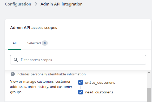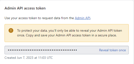 In new app, press ”Configure Admin API scopes”, select credentials: